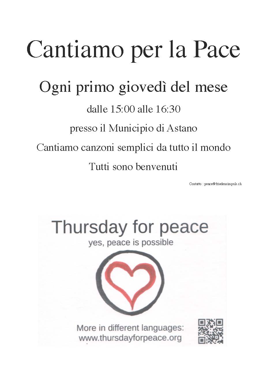 Cantiamo per la Pace è una nuova proposta, a cadenza mensile, presso lo Spazio in Comune di Astano.