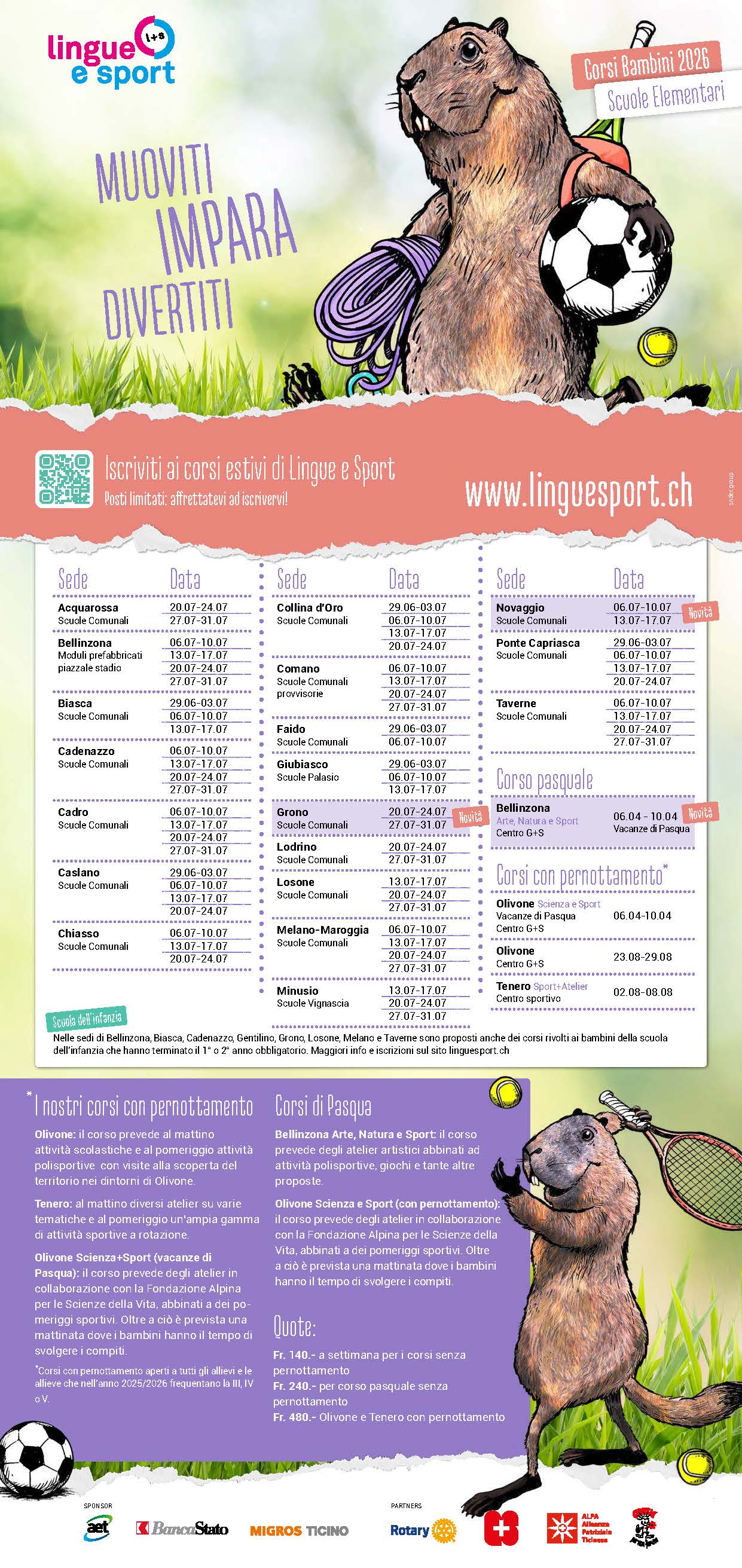 Segnaliamo che nel nostro Comune si terrà il corso "Lingue e Sport" dal 6 luglio al 17 luglio, presso le scuole elementari di Novaggio.